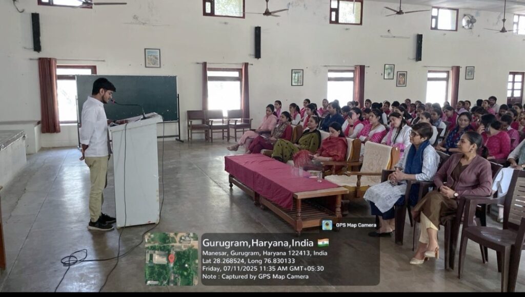 Our students participated in the District Youth Festival held on 6th & 7th November at Government College, Sector-14, Gurugram . It offered a vibrant platform for students to showcase their cultural and literary talents. Our students, Shamina and Dhaneshwari, both won 2nd position in their respective events, Poster Making and Poem Writing displaying commendable performance and dedication. They were honoured with a ₹2100 cash prize, adding to the college’s pride. This highlights the institution’s impetus for holistic development and active involvement in co-curricular activities.