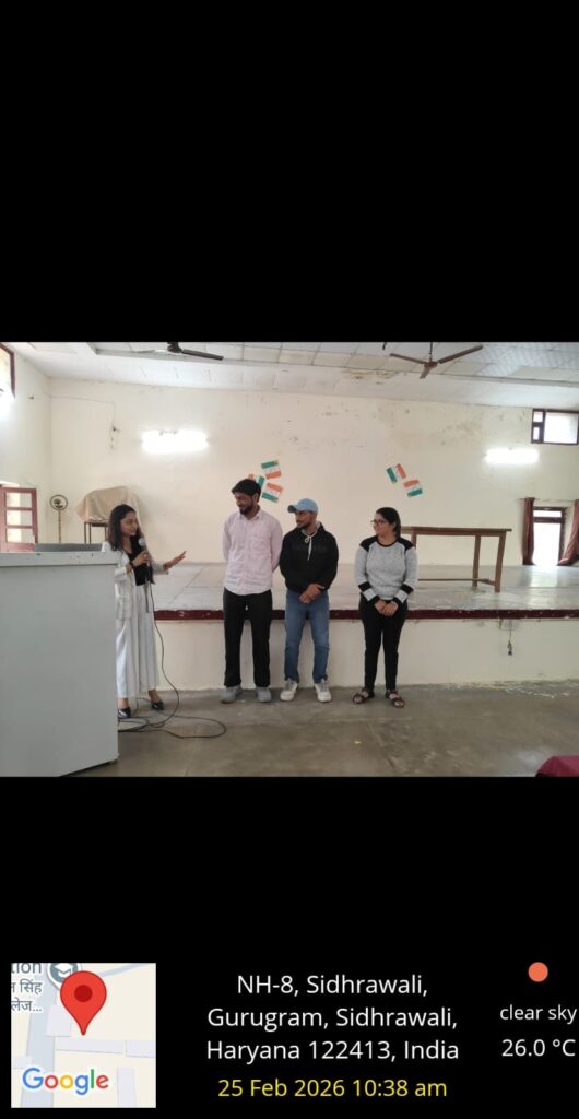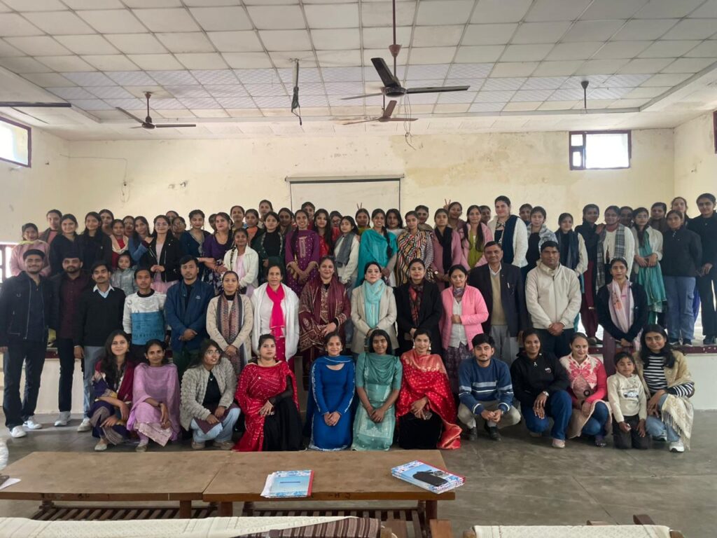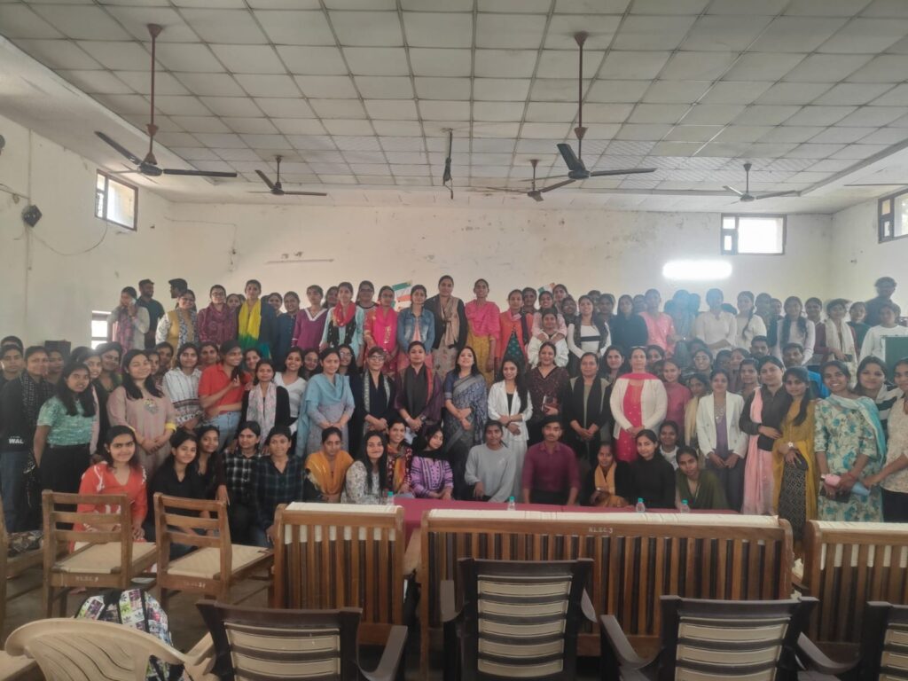 An Extension Lecture on the topic “Mental Health Awareness and Stress Management” was organized on 21st February by the college Youth Red Cross Committee. The lecture was delivered by Dr. Poonam Bharti, she shared valuable insights on the importance of mental health, emotional well-being and effective stress management techniques. She explained how maintaining a healthy mind is essential for academic success, professional growth, and personal development. Practical strategies such as positive thinking, time management, meditation, and maintaining a balanced lifestyle were also discussed. All students, along with the staff members actively participated in the session. The lecture was highly informative, interactive, and beneficial for everyone present.