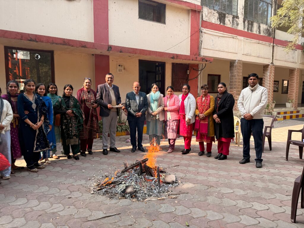 The college celebrated Lohri on 13th January with great enthusiasm . General Secretary Sh. R. S. Yadav ji’s presence made the event more gracious. Programme was organised under the coordination of Cultural Committee convener Dr. Preeti Sangwan, in the presence of officiating principal Dr. Poonam Dhull and all the faculty members. The programme highlighted the cultural significance of Lohri as a harvest festival of Punjab, symbolizing joy and prosperity. The performances included Punjabi dance performances and punjabi anchoring, in which students participated dressed in traditional attire, the students presented energetic performances reflecting the true spirit of Lohri. The event created a festive atmosphere and encouraged students to appreciate Indian cultural traditions. The celebration concluded with lohri bonfire, group photo and with parshaad distribution.