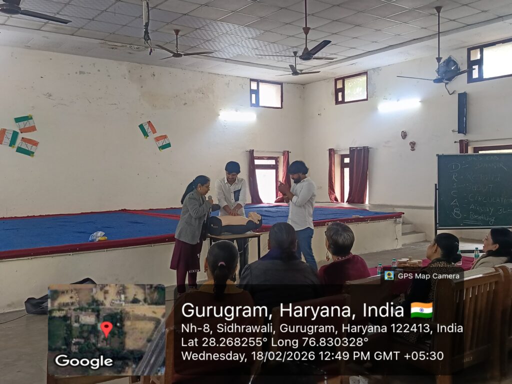 On 18th February, college Youth Red Cross Committee organized a CPR Training Programme to spread awareness about life-saving techniques and emergency response. The programme was conducted by Dr. … . The event was graced by the esteemed presence of Principal Dr. Poonam Dhull, all the staff members and representatives from Saath Chale Foundation. All the students actively participated in the session. During the programme, the steps of performing CPR was demonstrated, and its importance in saving lives during cardiac emergencies was clearly explained. The session was informative, interactive, and highly beneficial for all the participants. The programme concluded successfully with great enthusiasm and active involvement of students and faculty members.
